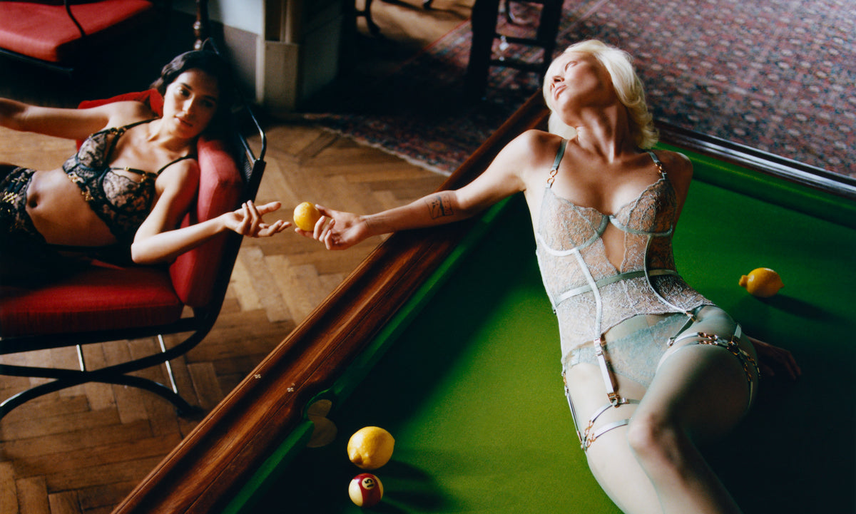 Romantic lace is paired with daring strap detailing, true to the Bordelle aesthetic when viewed from the back.